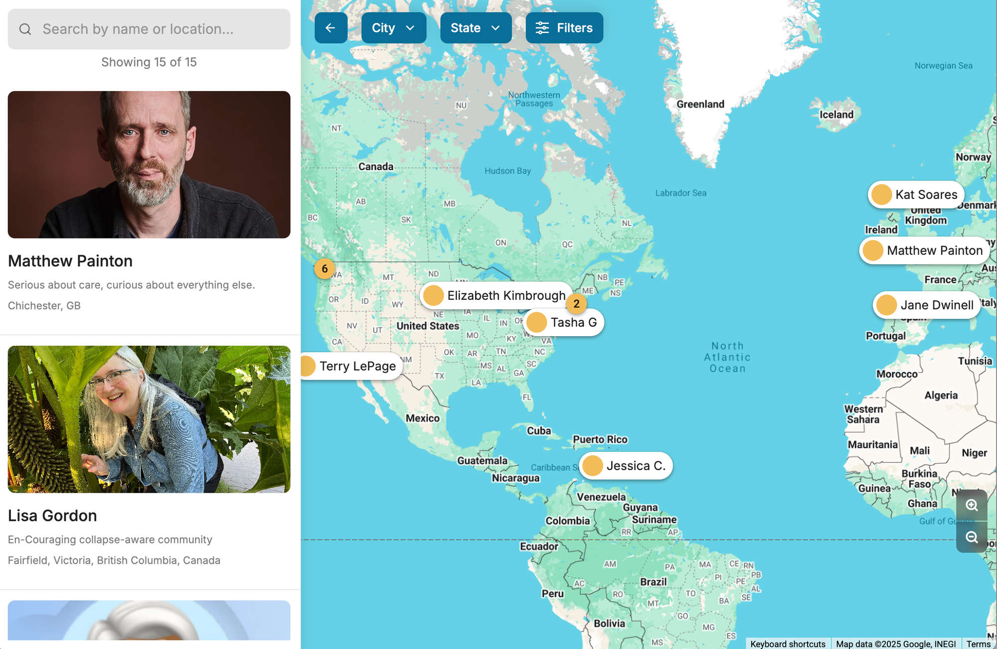 - You can filter the list by Country, State, and City. (Watch for alternate spellings.)